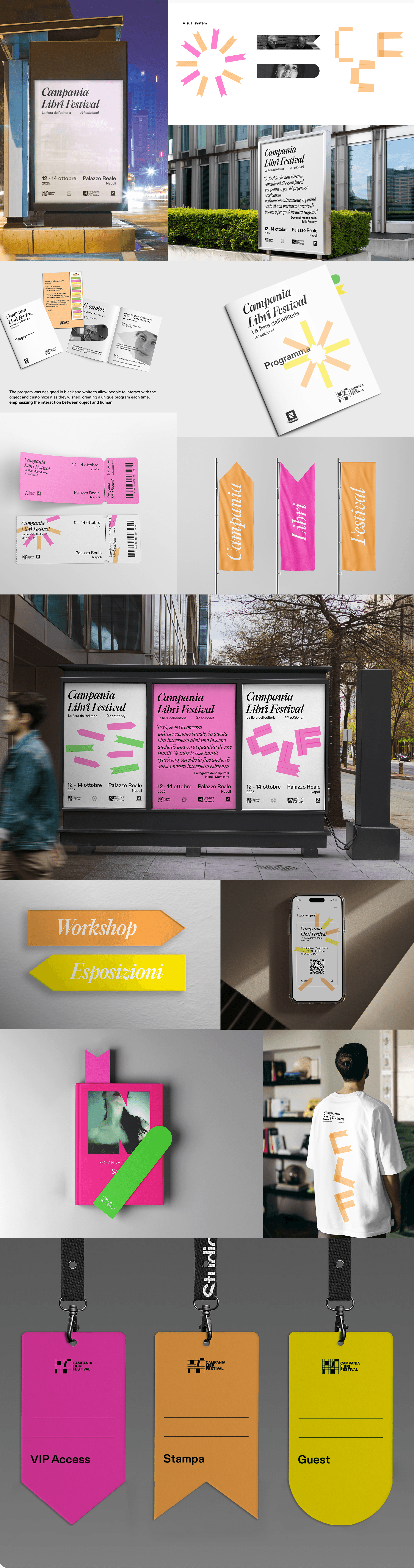Campania Libri Festival is the most important book event in Campania, celebrating literature, culture, and the art of reading. Hosted in the prestigious Palazzo Reale of Naples, the festival brings together authors, publishers, and book lovers for a dynamic program of talks, workshops, and exhibitions. In its latest edition, the event welcomed an impressive 35,000 visitors, confirming its role as a key cultural gathering in the region.The communication concept behind the event was inspired by a return to tangible objects, reflecting a growing trend among younger generations who are rediscovering vintage items such as film cameras and vinyl records. In order to do that, it was needed an object non-replicable on digital, so it was thought a communication based on pagemarkers.