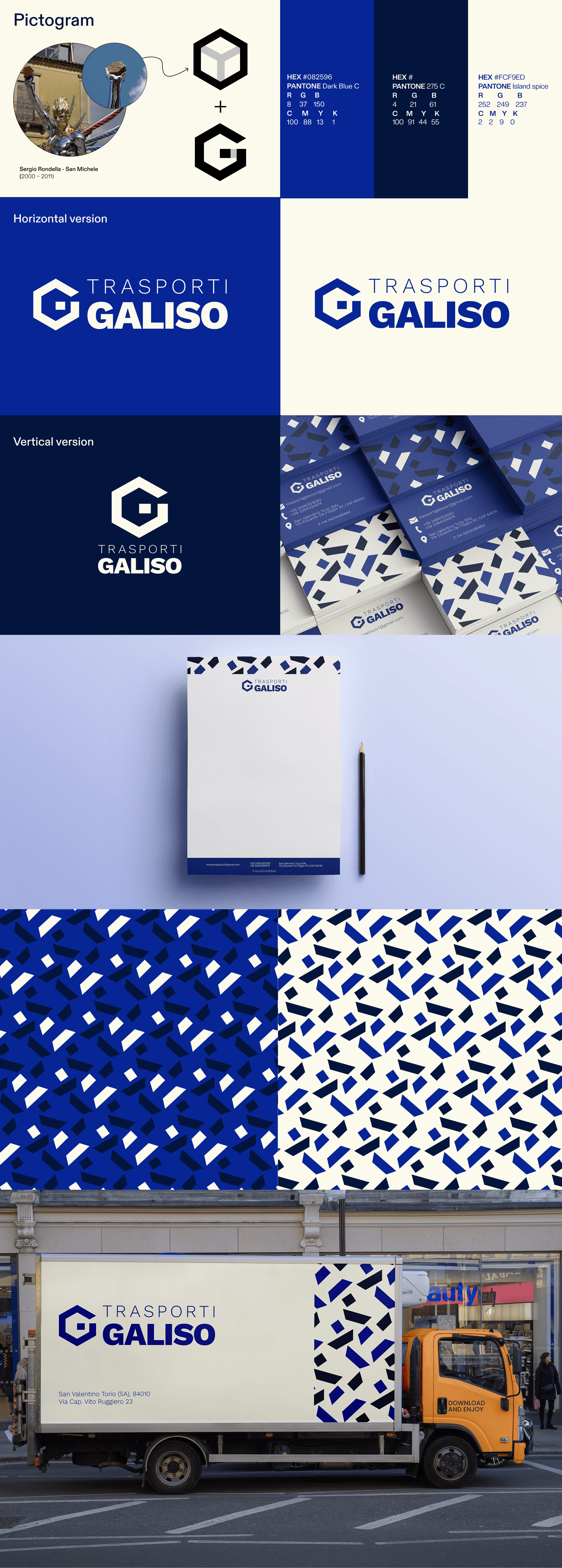 Trasporti Galiso Srl is a family-run transport company that operates throughout Italy, prioritizing customer needs. None of this would be possible without a strong foundation of dedication and collaboration, always striving to ensure fast and efficient deliveries. The client wanted the logo to include a reference to Saint Michael while still maintaining coherence with the transportation industry.